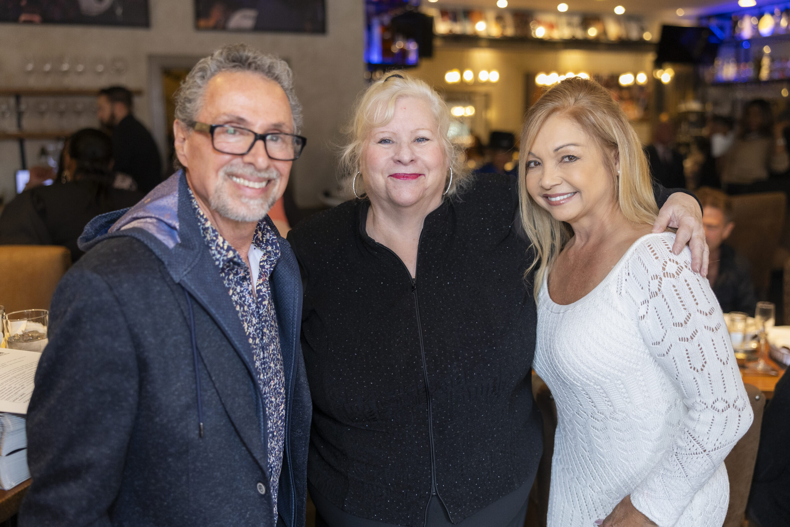 Saxophonist Richard Elliot, Melanie Maxwell and Camella Elliot at the Smooth Jazz News 25th Anniversary Brunch Party at Spaghettini in Seal Beach, California, on Jan. 19, 2025